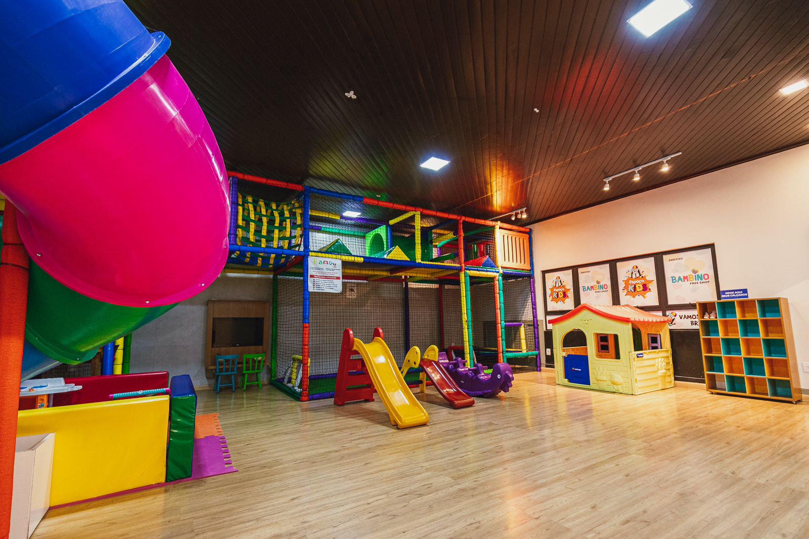 Contamos com um espaço Kids amplo e moderno para a criançada se divertir, com mesa de jogos, videogame, casinha, escorregador e vários outros brinquedos. Traga seus filhos para o Canbroa Matriz que a diversão não vai faltar! |